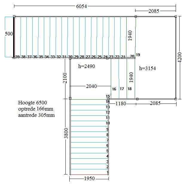 De stalen trap hieronder is donker blauw en met rubberen doppen in de trede.